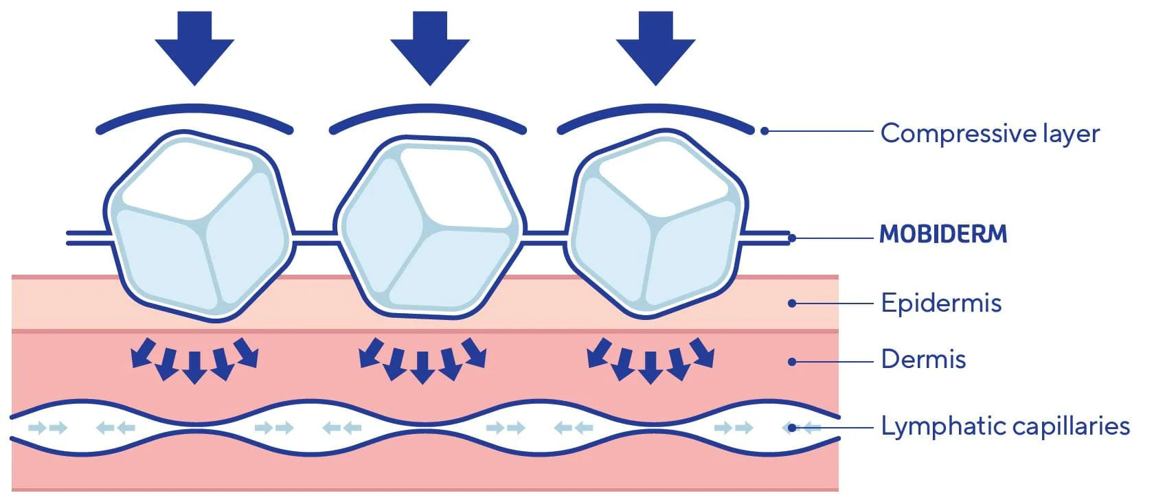 The MOBIDERM® autofit garments are designed to mobilize edematous or indurated subcutaneous tissues.