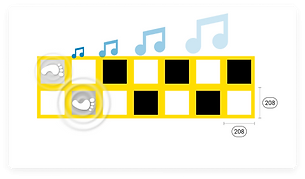 Visual and audial feedback when the participant steps on the highlighted cell on the projected area.