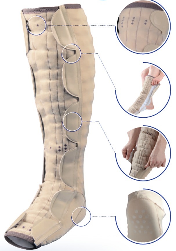 The MOBIDERM® Technology can be used under a reducing bandage (in its bandage or pad forms), or incorporated into mobilizing garments.