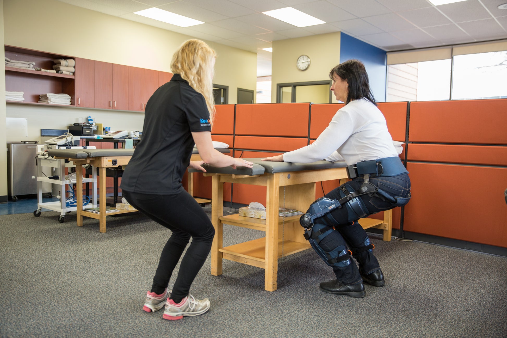 "Dermoskeleton" is a sub-class of exoskeleton, and is a low-profile, innovative, and user-initiated device different from existing exoskeletons. Keego™ does not attempt to move through a predetermined pattern of movement, but rather integrates seamlessly with movements initiated by the user herself, and provides assistance based on detected activity.